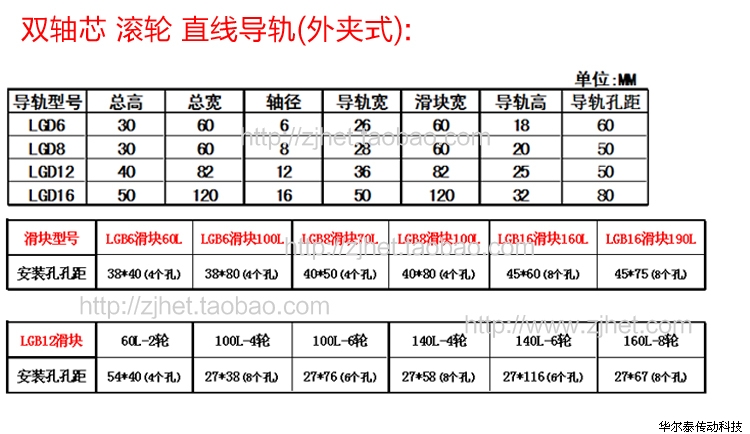 產(chǎn)品規(guī)格:LGD6, LGD8,LGD12, LGD16 LGD6: 軌寬26,滑塊寬60,總高30,軸芯直徑6, 整支長(zhǎng)為4米,超過可進(jìn)行超長(zhǎng)對(duì)接, LGD8: 軌寬28, 滑塊寬60,總高30,軸芯直徑8, 整支長(zhǎng)為4米,超過可進(jìn)行超長(zhǎng)對(duì)接, LGD12: 軌寬36,滑塊寬82,總高40,軸芯直徑12, 整支長(zhǎng)為6米,超過可進(jìn)行超長(zhǎng)對(duì)接, LGD16: 軌寬50,滑塊寬120,總高50,軸芯直徑16, 整支長(zhǎng)為4米,超過可進(jìn)行超長(zhǎng)對(duì)接, 產(chǎn)品特點(diǎn): 1、耐蝕性及防銹性:雙軸心式滑軌之滑塊,軸心支持座,材質(zhì)為鋁合金,加工后表面經(jīng)陽極處理,不僅外型美觀且具耐蝕性,再加上軸心鍍硬鉻不生銹故具有優(yōu)異的防銹效果。