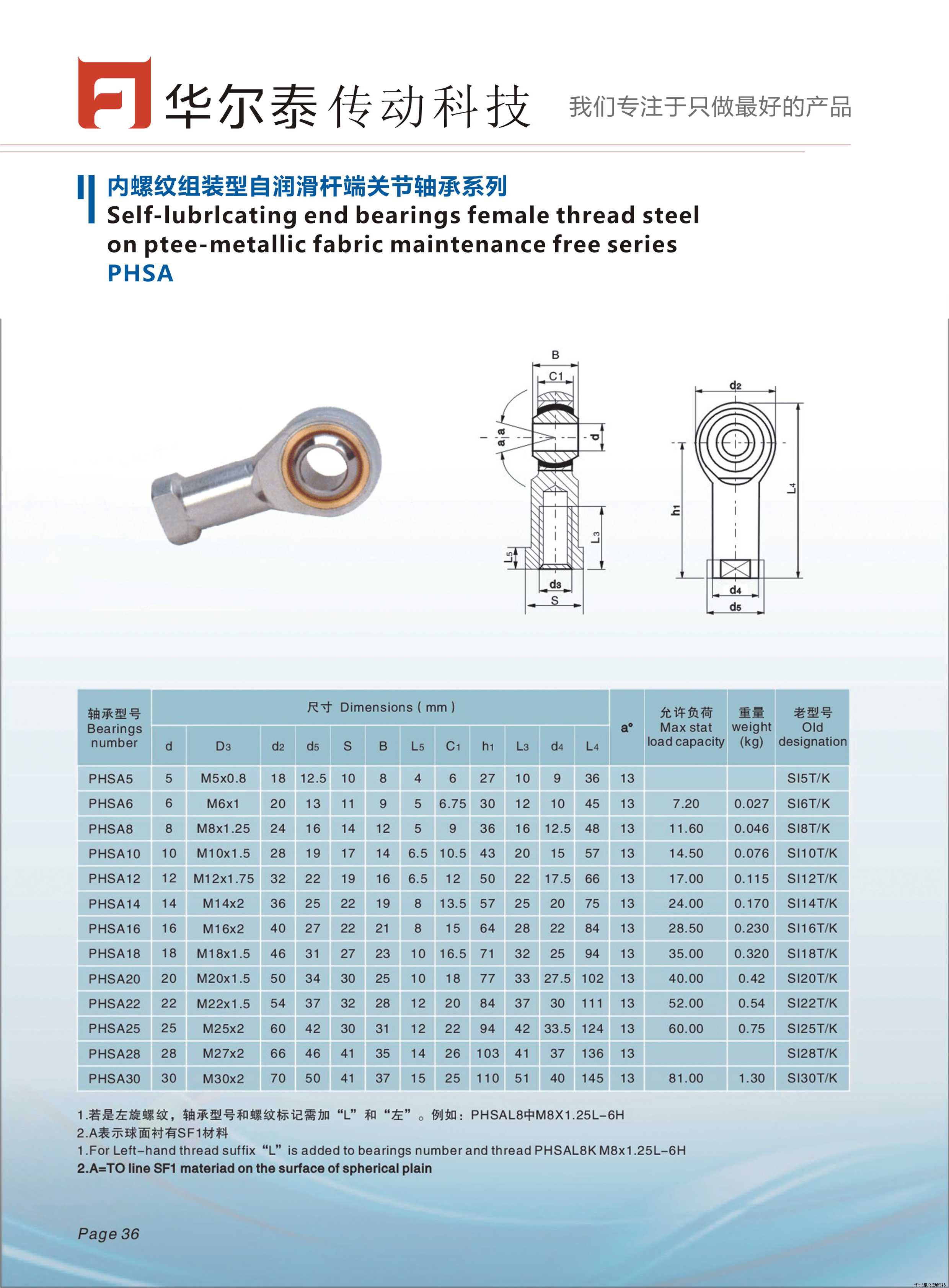 PHSA內螺紋帶油嘴桿端關節(jié)軸承